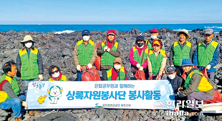 공무원연금공단(이사장 김동극) 제주지부는 지난 20일 퇴직공무원으로 구성된 상록봉사단원 20여 명과 함께 제주시 애월읍 하귀리 해안에서 해양 쓰레기 수거활동을 실시했다.