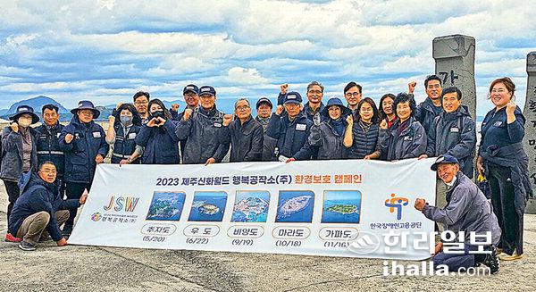 제주도 내 복합리조트 제주신화월드와 행복공작소(주)는 지난 16일 서귀포시 대정읍 가파리에서 임직원 30여 명이 참여한 가운데 환경정화활동을 실시했다.