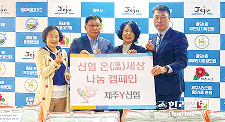 제주Y신협(이사장 여혜숙)은 최근 따뜻한 겨울나기를 위한 나눔 활동으로 제주시 용담1동 동사무소에 겨울용 이불 27개 등 난방용품을 전달했다.