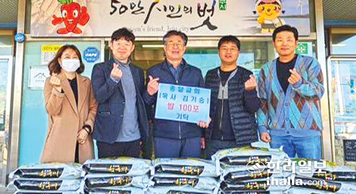 종달교회(목사 김기승)는 지난 20일 지역의 취약계층 지원을 위한 쌀 100포대(270만원 상당)를 제주시 구좌읍(읍장 오상석)에 기탁했다.