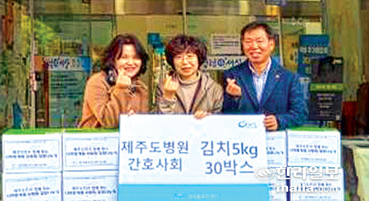 제주특별자치도 병원간호사회(회장 현희숙)는 지난 20일 제주시 아라동(동장 고명선)을 방문해 김치 30박스를 전달했다.