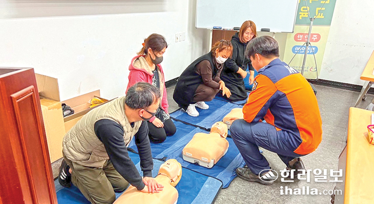 이번 교육은 심폐소생술 및 자동심장충격기(AED) 사용법, 소화기·완강기 사용법, 119다매체 신고 서비스(문자·영상·119신고앱) 활용 방법 등이 진행됐다.