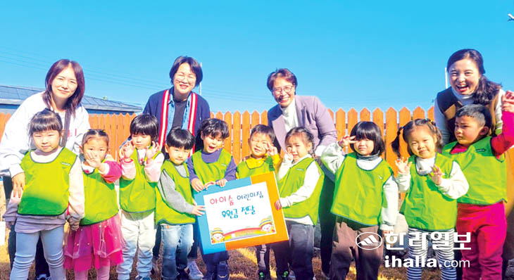 제주시 삼도동 소재 아이숲어린이집(원장 고원희)은 지난 21일 라온주간활동센터(센터장 김명열)를 찾아 나눔장터 수익금을 전달했다.