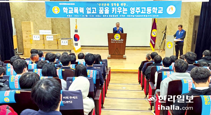 바르게살기운동 제주특별자치도협의회(회장 좌중언)는 지난 20일 영주고등학교(교장 이동성) 방송영상관에서 안전문화 정착을 위한 학교폭력 예방 캠페인 및 장학금 전달식을 가졌다.