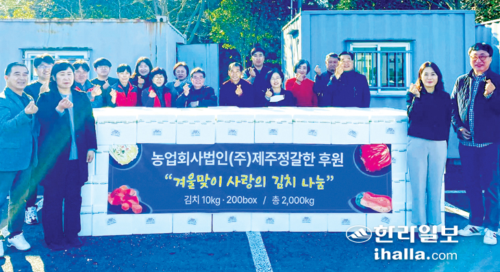 농업회사법인(주)제주정갈한(대표 고영진)은 지난 22일 연말을 맞아 1000만원 상당의 김치 10㎏ 200박스를 서귀포시 표선면사무소(면장 조성연)에 기탁했다.
