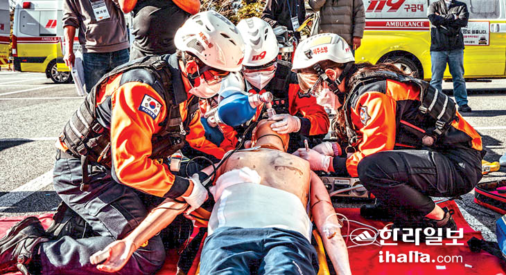 제주도 소방안전본부는 지난 22일 서귀포시 안덕면 서광리에 위치한 제주 항공우주박물관에서 재난현장 구급대응 훈련을 실시했다.