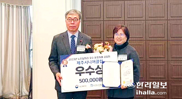 제주시니어클럽(관장 김효의)은 최근 한국노인인력개발원에서 공모한 노인일자리 우수 운영사례 공모에서 우수 운영사례로 선정돼 한국노인인력개발원장상을 수상했다.