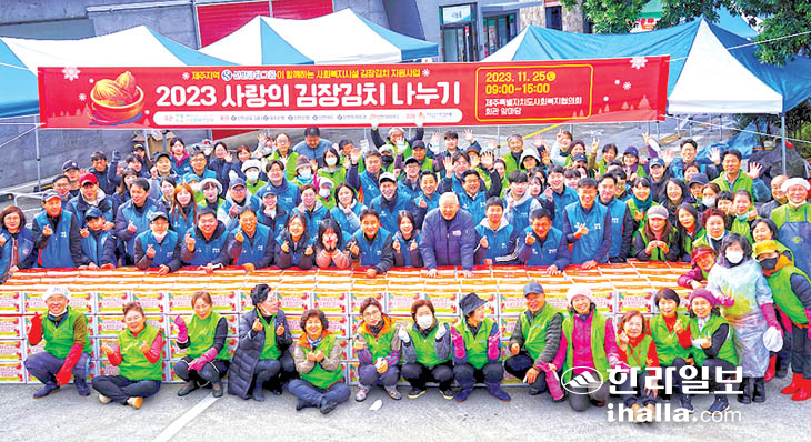 제주은행(은행장 박우혁)과 제주지역 신한금융그룹(회장 진옥동) 임직원은 지난 25일 제주특별자치도 사회복지협의회(회장 고승화)를 찾아 '신한금융그룹과 함께하는 2023 사랑의 김장김치 나누기' 행사를 실시했다.