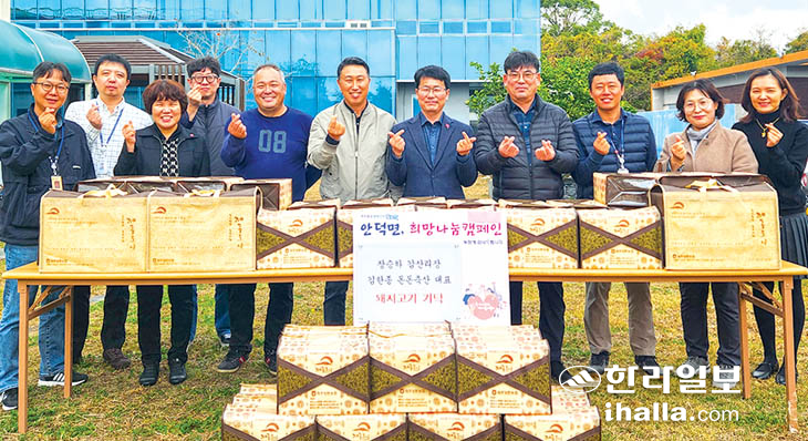안덕면 장승하 감산리장과 김한종 돈돈축산 대표는 지난 23일 서귀포시 안덕면(면장 송창수)을 방문해 독거노인, 한부모가정 등 관내 취약계층에게 전달해 달라며 400만원 상당의 돼지고기 70박스를 기탁했다.