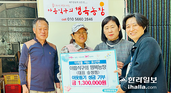 서귀포시 표선면에 있는 아홉식구의 행복농장(대표 송정희)은 최근 농림축산식품부 주최 제7회 여성농업인 생활수기 공모전에서 우수상을 수상해 받은 상금 100만원과 의료비 지원이 필요한 학생을 위한 30만원을 표선면(면장 조성연)에 기탁했다.