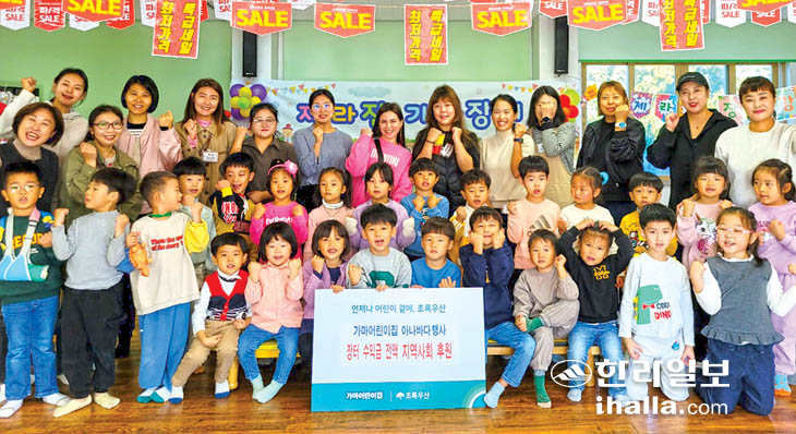 서귀포시 표선면에 위치한 가마어린이집(원장 양정생)은 지난 27일 초록우산 제주지역본부(본부장 변정근)를 통해 아나바다 장터 수익금 74만4000원을 전달했다. 이번 아나바다 장터를 통해 원생들은 장난감과 옷 등을 플리마켓을 통해 판매했고 판매 수익금을 통해 후원금을 마련했다.
