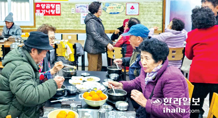 제주시 일도1동에 위치한 태산봉해장국(대표 김봉태)은 28일 음식점에서 일도1·2동, 이도1동, 건입동 노인 200여 명을 초청한 가운데 식사 제공과 함께 색소폰 공연과 어르신 노래자랑 등으로 마련한 경로잔치를 개최했다.