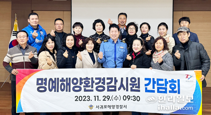 서귀포해양경찰서(서장 윤태연)는 29일 서귀포항 일대에서 찾아가는 해양 환경 보전 행사의 일환으로 명예해양환경감시원 간담회를 실시했다.