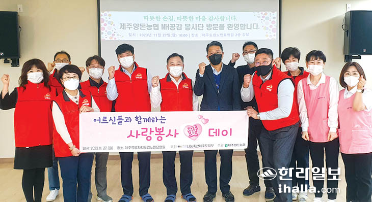 제주양돈농협(조합장 고권진)은 지난 27일 제주도립노인요양원을 방문해 어르신들과 이야기를 나누며 안부·건강 상태를 확인하는 말벗 서비스 봉사를 진행했다. 이와 함께 겨울철 돼지고기 나눔행사도 실시했다.