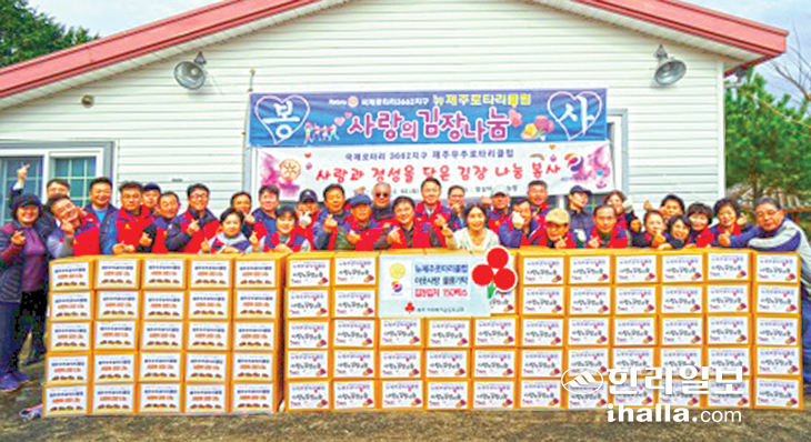 국제로타리 3662지구 뉴제주로타리클럽(회장 김용광)은 지난 2일 제주시 봉개동 명도암참살이농장에서 김장 봉사활동을 진행하고 김장김치 150박스를 제주사회복지공동모금회(회장 강지언)에 기탁했다.