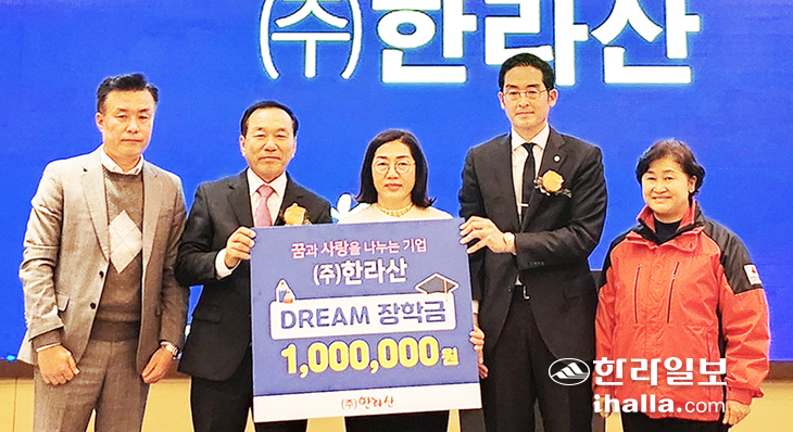 '드림 장학금'은 (주)한라산이 운영 중인 장학사업의 하나로 도내 43개 읍·면·동의 우수 장학생을 대상으로 장학금을 지원 중이다. (주)한라산은 '제주지역 인재 육성 및 사회 환원 캠페인'을 통해 도내 읍·면·동을 선정해 중·고등학생과 대학생 100여 명에게 장학금을 전달한 바 있다.