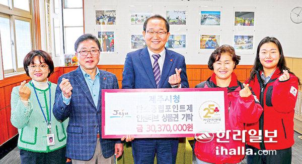 제주시는 4일 2021년도 탄소중립포인트제 에너지 분야(전기, 상수도, 도시가스) 인센티브 미지급분 상품권 3037만원을 제주특별자치도 사회복지공동모금회(회장 강지언)에 지정 기탁했다.