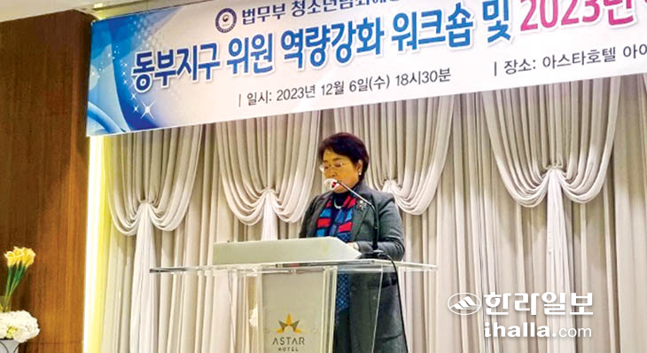 법무부 청소년 범죄예방위원 제주지역협의회(회장 고영두) 자원봉사분과 동부지구(회장 백희순)는 지난 6일 제주 시내 아스타호텔에서 회원 150여명이 참석한 가운데 위원 역량 강화 워크샵 및 2023 어울림 송년의 밤을 실시했다.