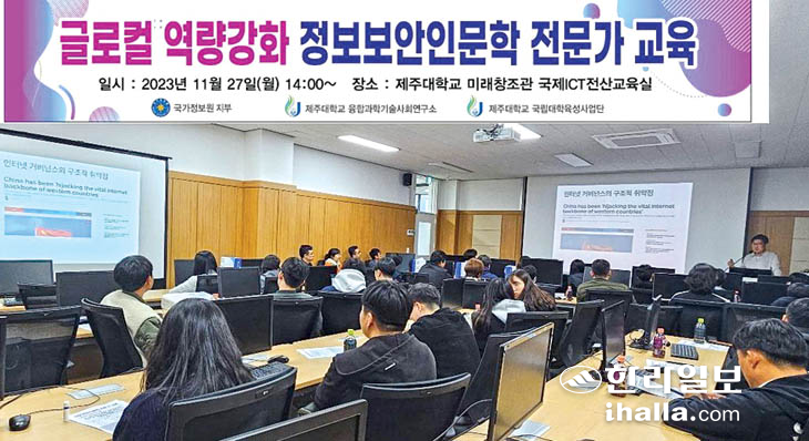 제주대학교 교육대학은 제주도민을 위한 오픈형 ‘국제 디지털 교실’을 구축하고 최근 제주대 대학원 융합정보안학 협동과정과 국가정보원 제주지부 공동 주관으로 ‘글로컬 역량 강화 정보보안 전문가 교육 아카데미’를 진행했다고 7일 밝혔다.