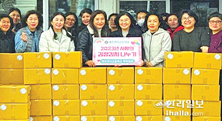 제주여자고등학교 학부모회(회장 오주영)는 지난 16일 학부모 30여 명이 참여한 가운데 학교 급식실에서 지역사회를 위한 나눔 실천의 일환으로 사랑의 김장나눔 행사를 가졌다.