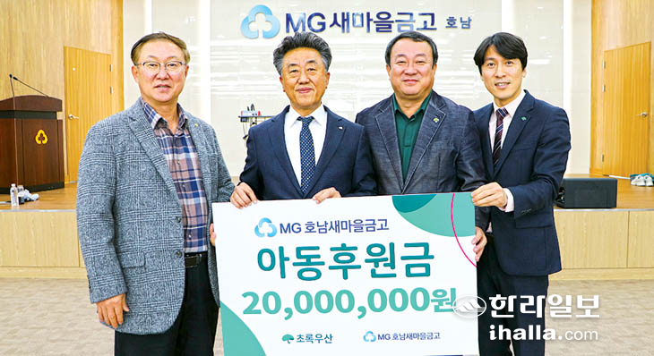 호남새마을금고(이사장 김용석)는 지난 15일 초록우산 제주지역본부(본부장 변정근)에 도내 소외아동 장학금 2000만원을 후원했다.