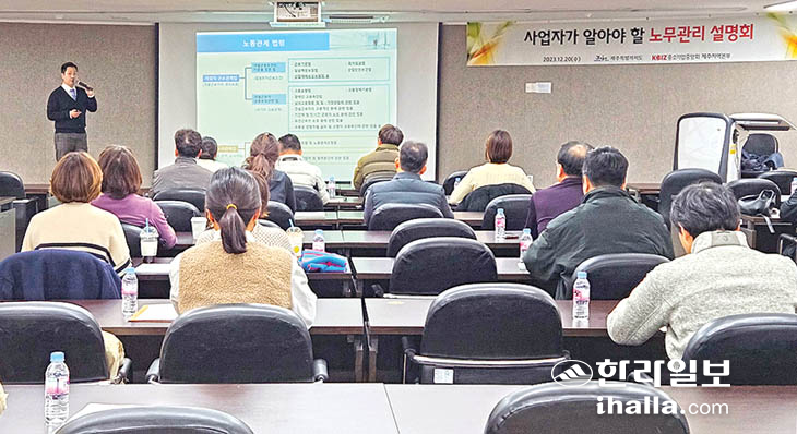 중소기업중앙회 제주지역본부(제주중소기업회장 성상훈)는 20일 제주경제통상진흥원에서 도내 중소기업을 대상으로 '사업자가 알아야 할 노무관리 설명회'를 개최했다.