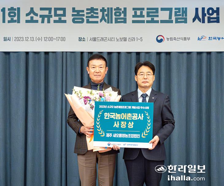새오름영농조합법인(대표 문경자)는 지난 13일 서울드래곤시티 노보텔에서 농림부가 주최하고 한국농어촌공사가 주관하는 '제1회 소규모 농촌체험 프로그램'에서 한국농어촌공사 사장상을 수상했다.