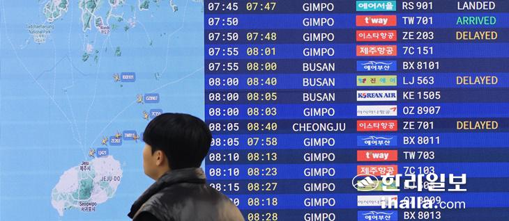 전날인 20일에도 국내선 항공기 14편(출발 7편, 도착 7편)이 결항됐고, 국내선·국제선 포함 150편 넘게 지연 운항되기도 했다.