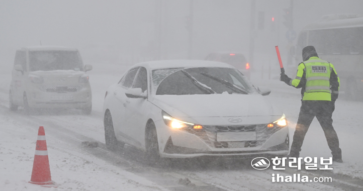 일주일 만인 17일에는 강풍과 함께 눈보라가 휘몰아치며 일부 도로에서는 교통 통제가 이뤄졌다. 또 22일에는 올겨울 최강 한파가 이틀째 불어 닥치며 제주공항 활주로는 8시간 가까이 마비되는가 하면 도내 전역에서는 각종 사고가 속출했다.
