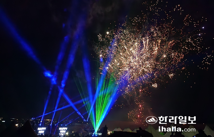 | 1일 성산일출봉 광장에서 열린 새해맞이 불꽃놀이. |