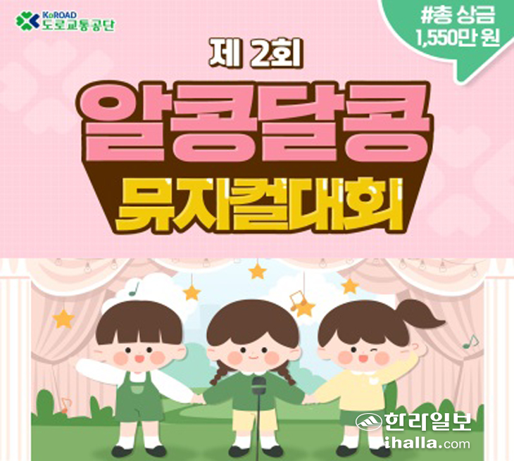 도로교통공단(이사장 이주민)은 어린이 교통사고 예방을 위해 전국 초등학생을 대상으로 '알콩달콩 뮤지컬 대회'를 주최한다. 대회는 교육부와 경찰청이 후원하며, 주제는 '도로 위 안전한 교통문화 만들기'이다.