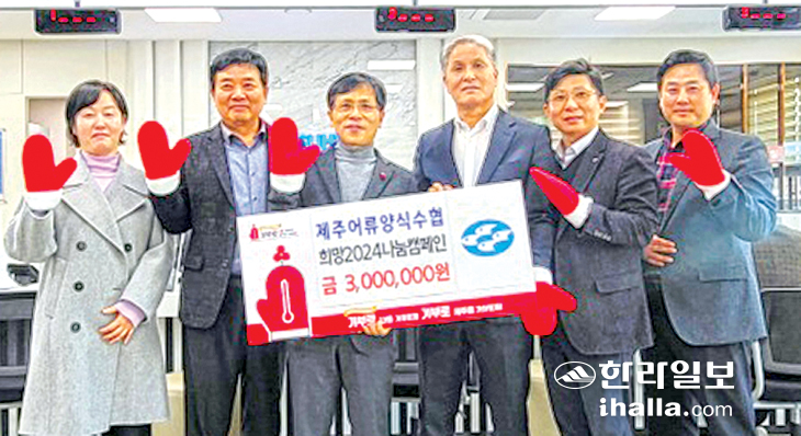 제주어류양식수협(조합장 한용선)은 지난 5일 제주시 제주어류양식수협 본소에서 희망 2024나눔캠페인 이웃사랑 성금 300만원을 제주사회복지공동모금회(회장 강지언)에 기탁했다.