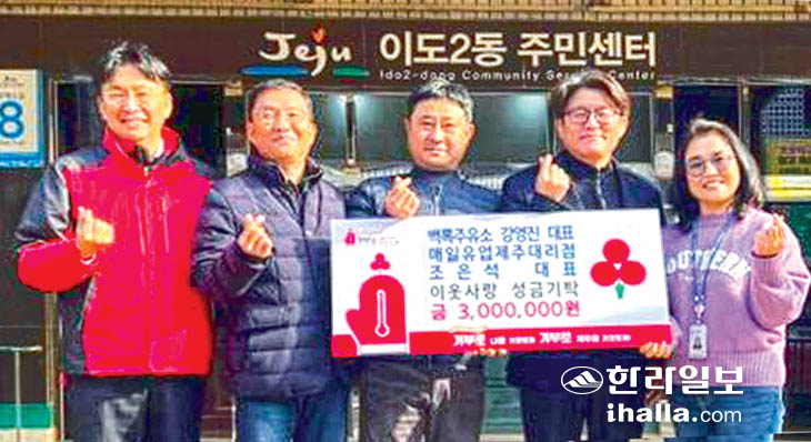 백록주유소(대표 강영진), 매일유업 제주대리점(대표 조은석)은 지난 5일 제주시 이도2동주민센터를 방문해 지역 내 어려운 가정을 위해 보탬이 되고 싶다며 성금 300만원을 사회복지 공동모금회통해 기탁했다.