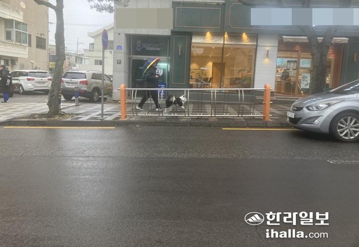 10일 오전 제주시 삼도1동의 한 도로. 흰색 점선으로 그려진 차선은 희미해져 거의 보이지 않았고, 완전히 지워진 곳도 있었다. 이날 아침 비 날씨로 인해 차선 확인은 더욱 어려웠다. 일부 운전자들은 차선을 이탈한 채로 주행하다가 이탈을 인지하고는 급히 제동을 걸었고 그 과정에서 뒤따르던 차량과 부딪힐 뻔하는 등 아찔한 모습도 목격됐다.