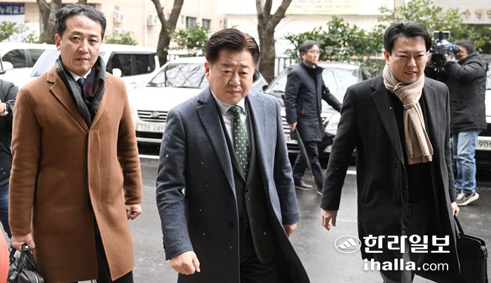 22일 공직선거법 위반 혐의 1심 선고 재판에 참석하는 오영훈 제주지사. 이상국 기자
