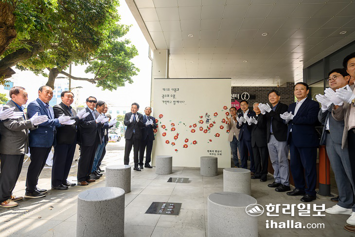 [한라일보] 지난해 5월 서귀포시청 1청사 동측 시민 쉼터 공간에 만든 '제주4·3과 오월 걸상' 아트월 등에 검은색으로 칠한 낙서가 발견돼 경찰 수사가 진행 중인 것으로 나타났다.