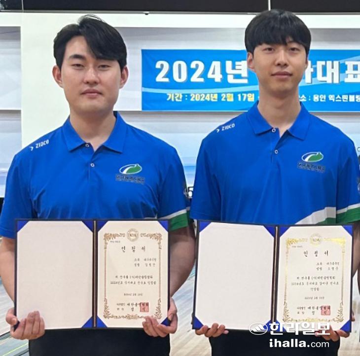2024년 볼링 국가대표 선발 결승전에서 3위를 차지하며 국가대표로 뽑힌 강명진(왼쪽)과 지난해 국가대표에 이어 올해 상비군으로 다시 선발된 오병준. 대구 북구청 제공