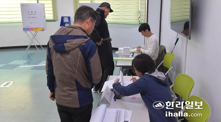 [한라일보] 선거 당일인 10일 오전 삼도1동 제4투표소에는 참정권을 행사하기 위한 유권자들의 발길이 이어졌다.