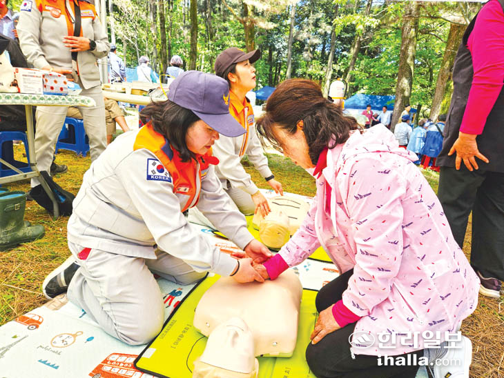 제주소방서 오라여성의용소방대(대장 홍영심)는 지난 27~28일까지 오라동 방선문 축제 행사장에서 심폐소생술 체험 부스를 운영하고, 행사장 내 안전사고 예방을 위한 순찰과 화재예방 홍보 활동을 실시했다.