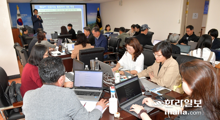 [한라일보] 지역 최초로 제주도 리더를 위한 '챗GPT 인공지능 지도사' 자격 취득 1기 교육과정이 진행됐다.