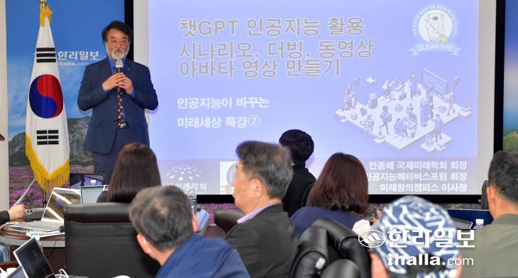 국내 대표 미래기관인 국제미래학회는 대한민국 인공지능메타버스포럼(회장 안종배) 및 한라일보사(대표이사 김한욱)와 1일 한라일보사 내 제주미래창의캠퍼스에서 '챗GPT 인공지능 지도사' 자격 취득 과정을 운영했다.