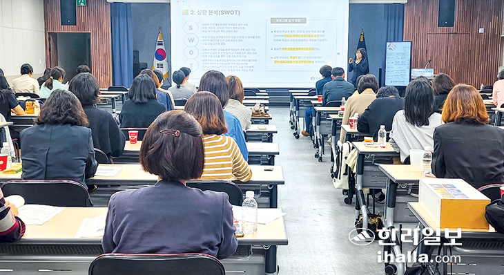 제주특별자치도교육청은 2024 제주꿈끼이음123교육과정 진로학기의 진로연계교육 운영을 지원하기 위해 지난달 29일 도내 중학교 담당 교사 60여 명을 대상으로 연수를 실시했다. 진로연계교육은 교과 내용과 연계해 진로 설계, 학습 방법 및 생활 적응 등 학습자의 삶과 성장을 지원하는 맞춤형 교육이다.