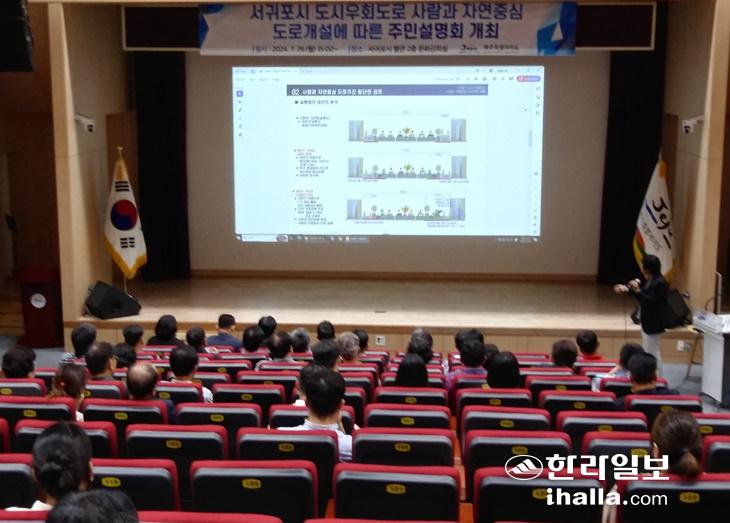 29일 오후 서귀포시청 별관 문화강좌실에서 '서귀포시 도시우회도로 사람과 자연 중심 도로 개설에 따른 주민 설명회'가 열리고 있다. 진선희기자