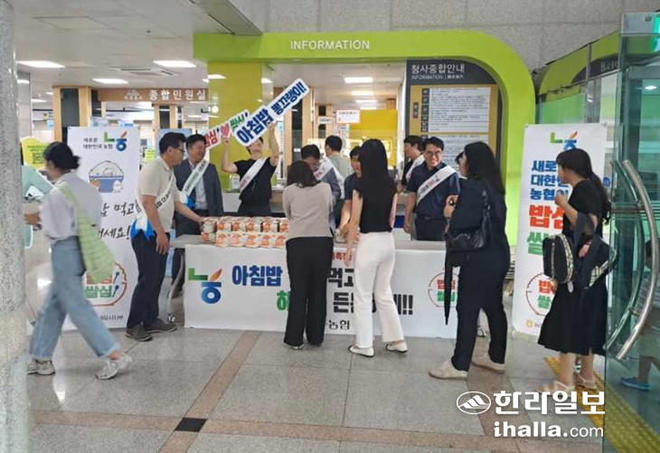 [한라일보] 오는 8월 18일은 제10회 쌀의 날. 제주시와 서귀포시가 16일 오전 농협과 함께 쌀 소비 확대를 위한 '범국민 아침밥 먹기 운동' 캠페인에 각각 나섰다.