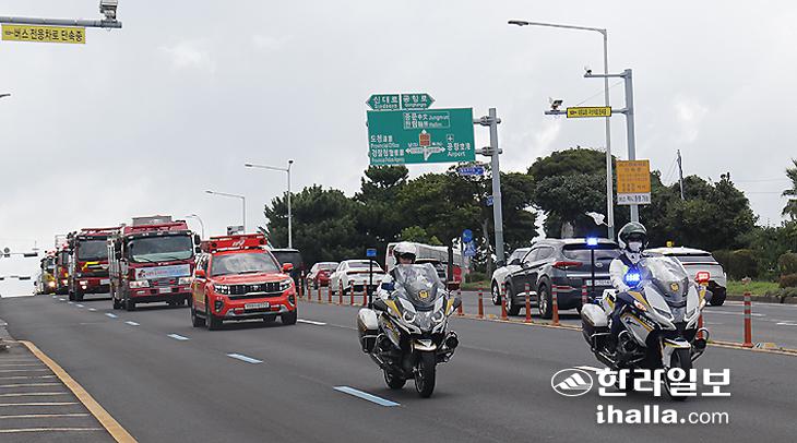 이번 훈련은 소방차 출동로 확보 공조체계 확립을 위해 자치경찰단과 합동으로 교통량이 많은 주요 정체구역(13㎞)을 실제 출동상황과 같이 경광등과 사이렌을 켜고 주행하며 진행했다. 주요 내용으로는 일반차 양보운전 실제 체험 유도, 도민과 함께하는 소방차 길 터주기 동승체험 진행, 소방시설 주변 불법 주정차 차량 계도 등이다.
