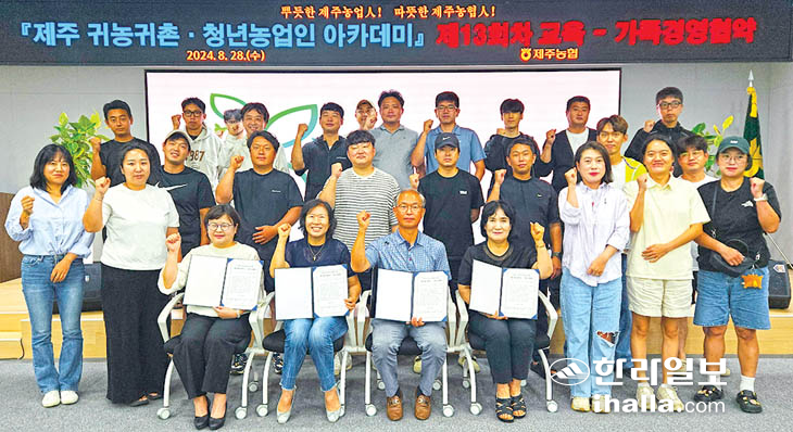 제주자치도와 농협제주본부(본부장 윤재춘)는 28일 농협 제주본부 대회의실에서 귀농귀촌·청년농업인 아카데미 교육생 및 관계자 40여 명이 참석한 가운데 '가족경영협약'과 농업인 논술교육을 실시했다.