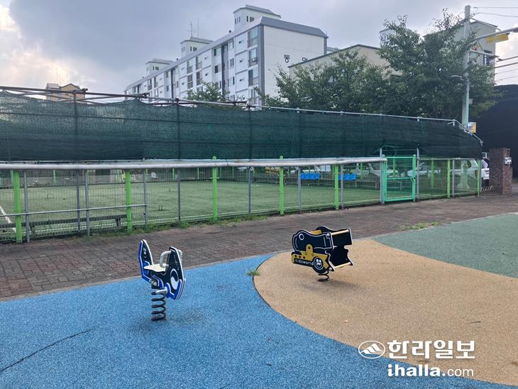 [한라일보] 어린이의 보건 및 정서생활 향상에 이바지하기 위해 설치된 어린이공원에서 어린이가 이용할 수 없는 게이트볼장이 조성돼 눈살을 찌푸리게 하고 있다. 해당 시설은 공원 전체 면적의 1/4을 차지할 만큼 클 뿐만 아니라 시설 노후화로 미관도 해치며 정비를 요청하는 주민들의 목소리가 커지고 있다.