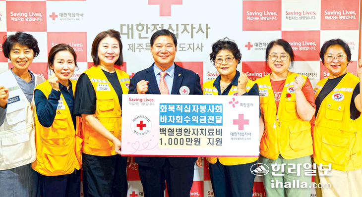 이번 성금은 지난달 제주적십자사에서 개최한 희망나눔 적십자 바자회 수익금으로 마련된 것으로, 적십자봉사원의 백혈병 치료비 지원에 쓰일 예정이다.