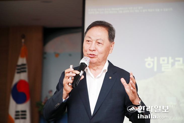 강 회장은 이날 도의회 대회의실에서 '히말라야 리더십'을 주제로 아웃도어 브랜드 '블랙야크'를 성공해 낸 경험을 풀어놨다. 실패를 두려워하지 않고 도전하는 리더십을 말하기도 했다.
