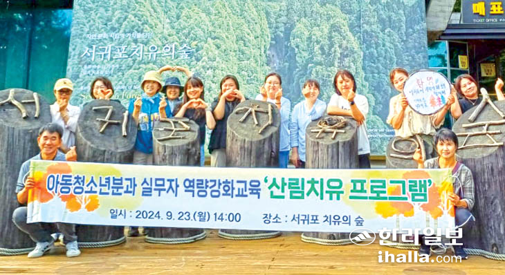 서귀포시지역사회보장협의체 아동·청소년분과(분과장 고민지)는 지난 23일 아동·청소년분과 실무자와 관계자를 대상으로 역량 강화를 위한 생명지킴이 교육과 치유의 숲 힐링 프로그램을 진행했다.